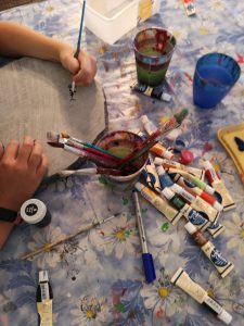 Den im Gartencenter ausgewählten Stein ließ ich von der Mittleren mit Acryl-Farbe bemalen und ich sah, wie sie dabei zusehends beruhigter und entspannter wurde.