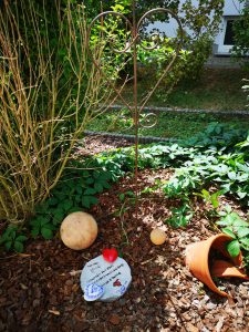 Das kleine rote Stein-Herz wurde eifrig von der Kleinsten bemalt und der große Pflanzen-Stecker rundet meiner Meinung nach ein schönes Eckchen im eigenen Pflanzen-Beet ab.
