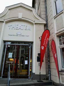 Ein paar Straßenbahnstationen von unserem wunderhübschen Apartment in einem der vielen Jugendstil-Altbauten befindet sich das „Theater der jungen Welt“.
