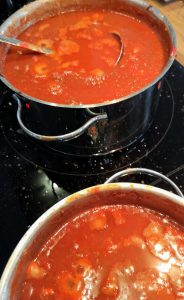 Denn hin und wieder überkommt’s den Gatten – und er kocht die Sauce in gigantischen Mengen zum Einfrieren vor.