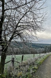 Wie gut die frische Luft tut – und wie hübsch die vom Raureif überzogenen Bäume aussehen!