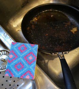 Da Männer jedoch bekanntlich gerne Fleisch in allen Varianten verwerten und verarbeiten, nicht jedoch als leidenschaftliche Pfannen- und Grillplatten-Schrubber bekannt sind, bleibt der Schmodder an mir hängen!