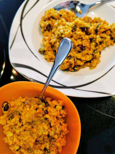 Ich habe mir kürzlich das “Indische Zweikorn-Curry” mit dem Sohn geteilt – und wir beide wurden vollends satt!
