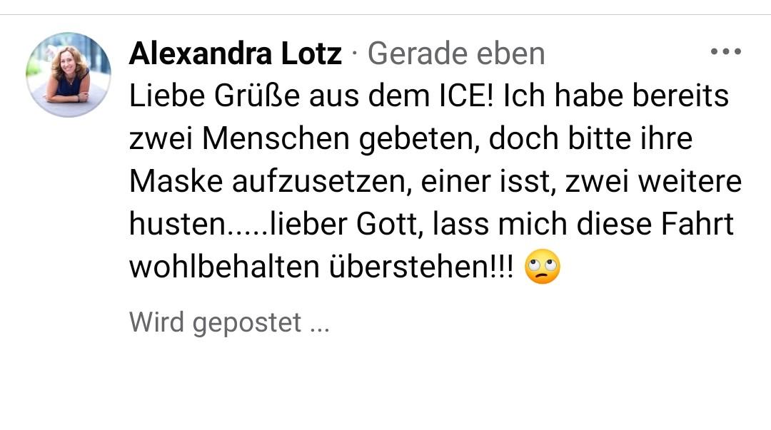 P.S. Später während der Fahrt muss ich einer anderen Blogger-Kollegin leider noch den folgenden Facebook Kommentar zum Thema Maskenverweigerer schreiben. Nicht schön. 🙁