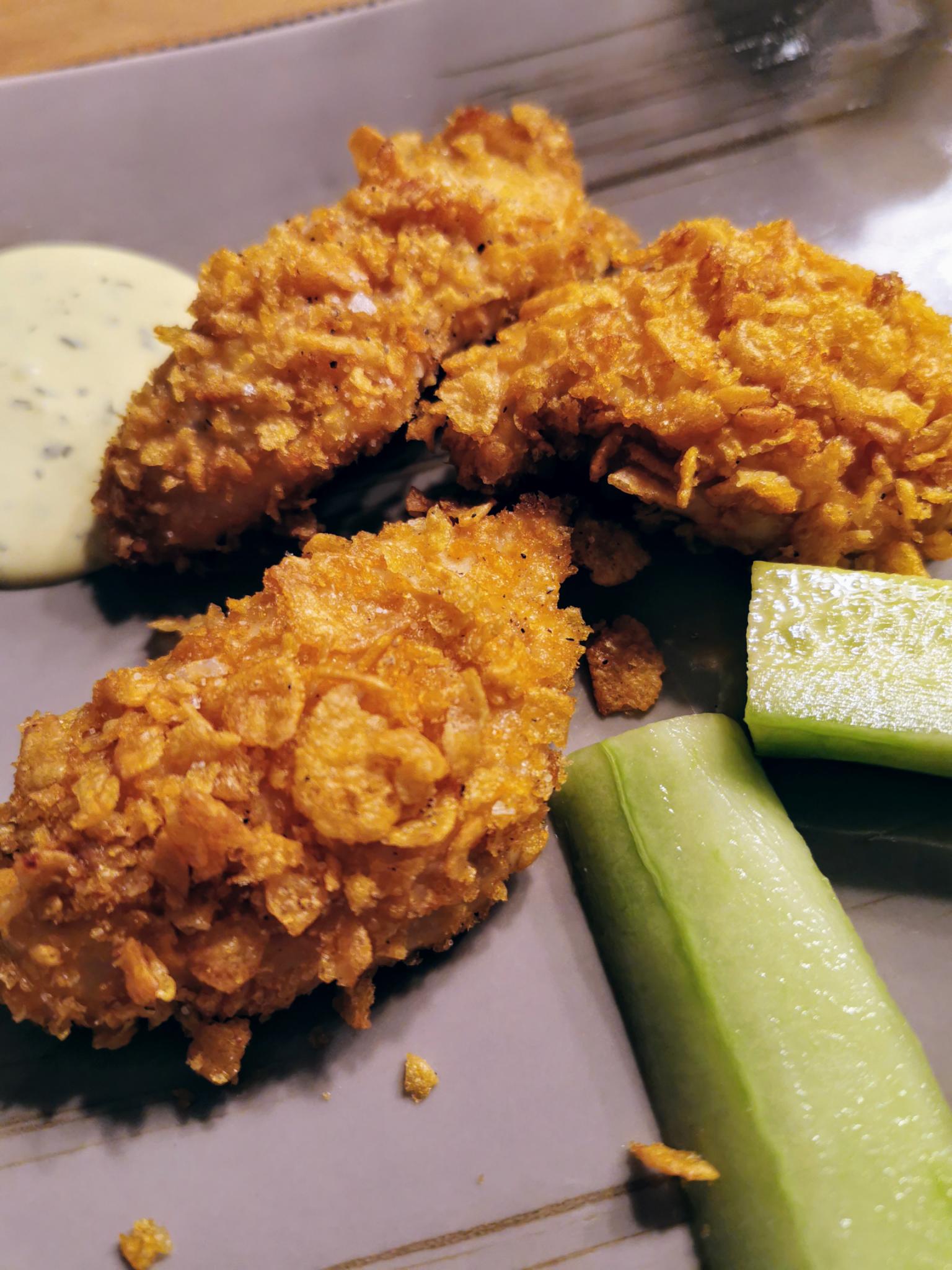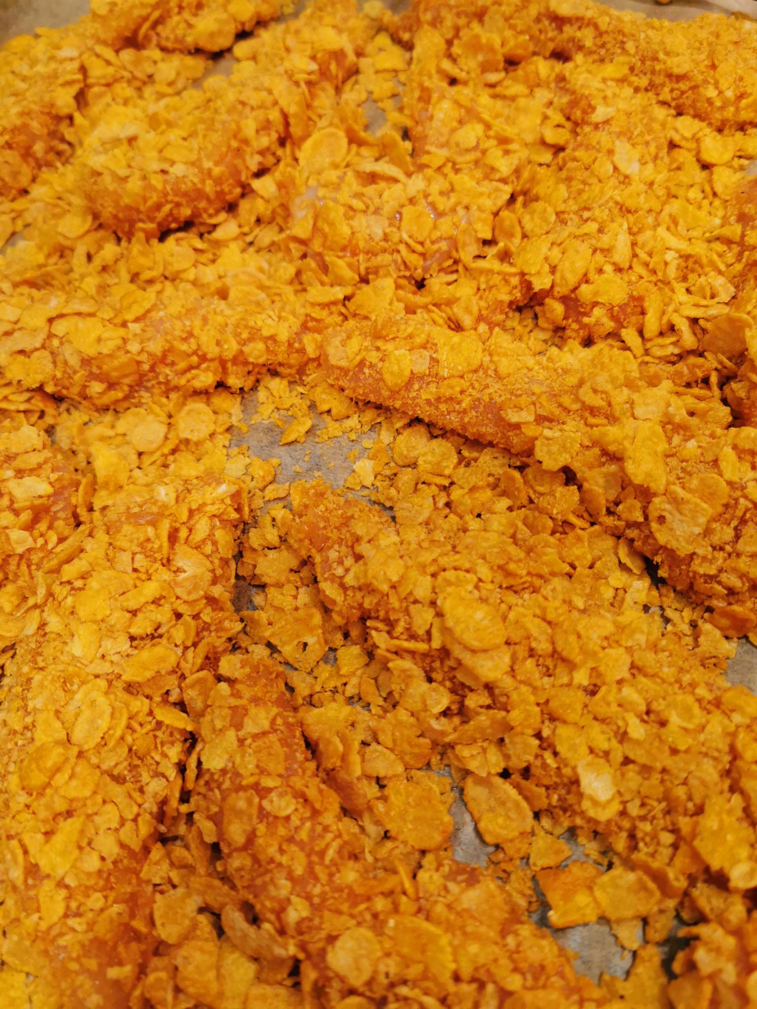 Heute möchte der Sohn wieder für uns kochen und da ihm das in den vergangenen Wochen immer hervorragend gelungen ist, freut sich die ganze Familie auf Chicken Nuggets im Cornflakes-Mantel!