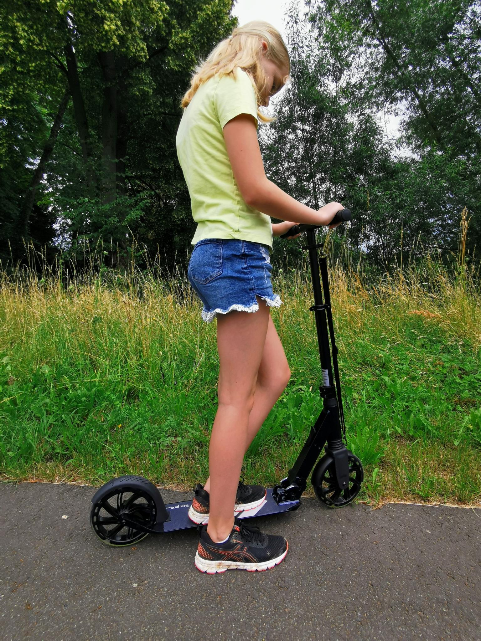 Nichts klappert und scheppert, wie sonst bei den üblichen Kinderrollern – und selbst ich stand schon darauf, ohne mich unsicher und wackelig zu fühlen!
