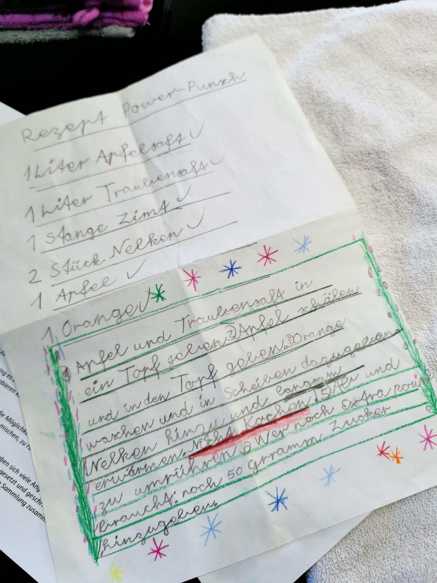 Vor einigen Jahren hatte die Mittlere ein ganz tolles und super einfaches Kinderpunsch-Rezept aus der Schule mitgebracht.