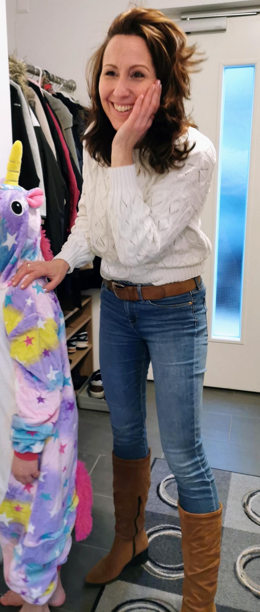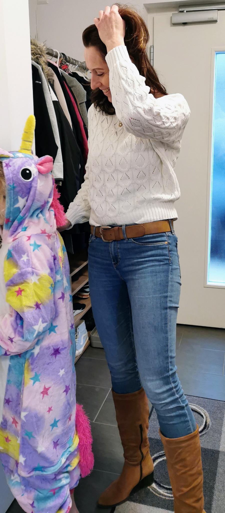 (Sie besitzt einen Einhorn-Einteiler aus Joggingstoff, welchen das Christkind vor drei Jahren beim Schweden besorgte.