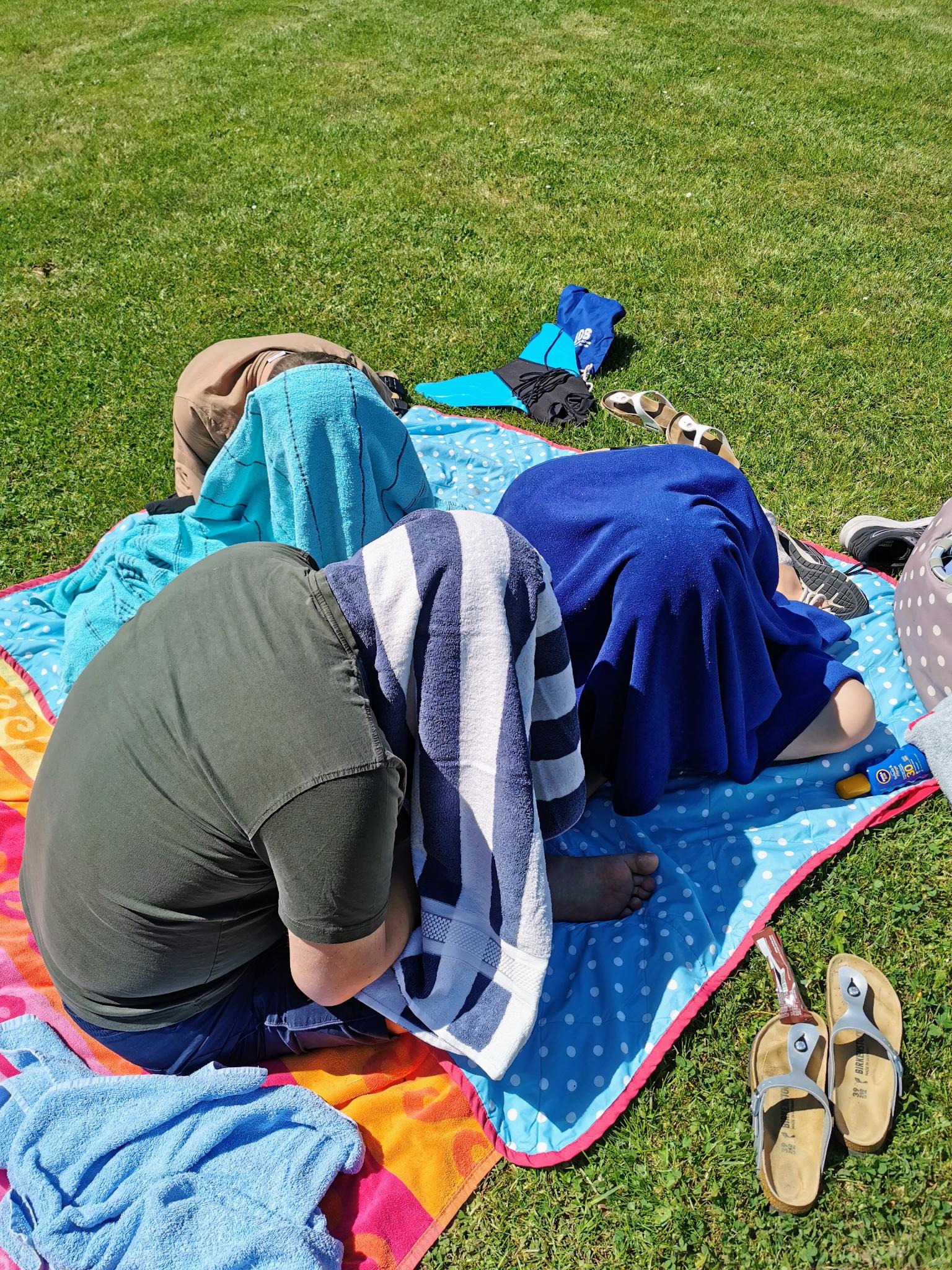Also mag ich jeden Moment genießen, an welchem wir hier gesund und zusammen faul auf der Wiese gammeln – oder im klaren Wasser schwimmen können!