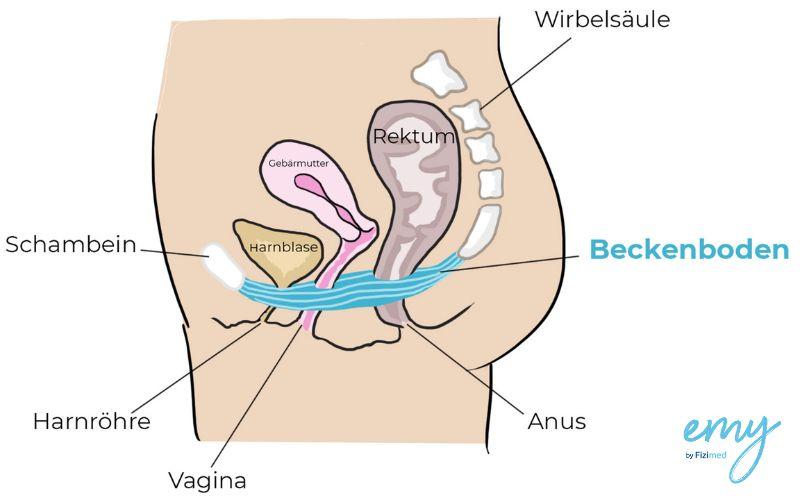 Der Beckenboden ist eine Gruppe von Muskeln, die sich vom Schambein bis zum Steißbein erstrecken. Man kann sich den Beckenboden auch als eine Art Hängematte vorstellen, die unsere Organe (Blase, Vagina, Gebärmutter und Rektum) trägt und unterstützt.