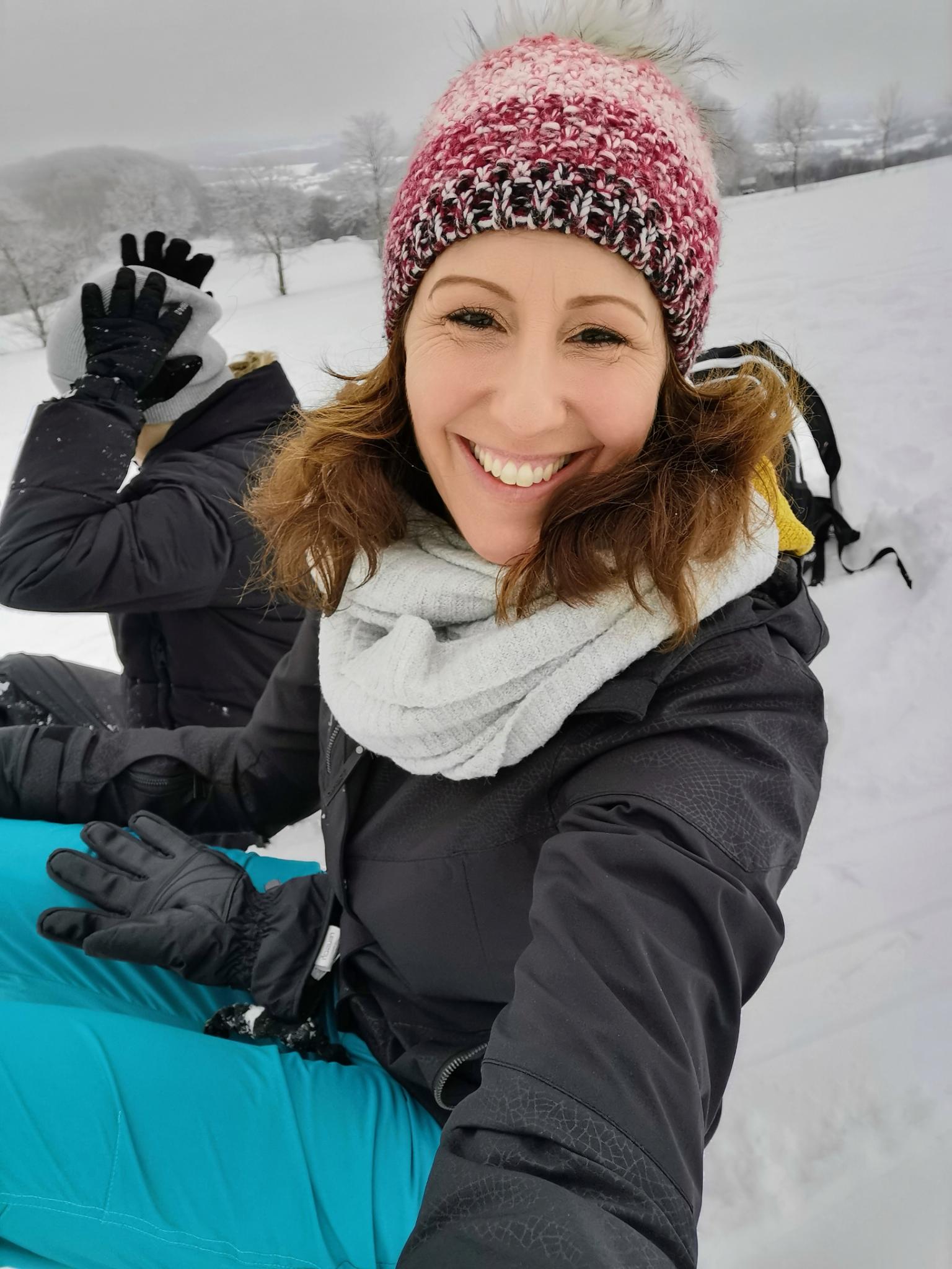 Während andere Familien schon längst bei heißem Tee und Picknick (DOCH!!! Ganz gewiss machen die alle Picknick!) einträchtig im Schnee hocken, die Wangen bereits gerötet ob so viel Draußen-Zeit, der Nachwuchs friedlich, glücklich und ausgepowert und Elternpaare lächelnd Händchen-halten (okay, jetzt wird’s doch absurd!!!), drehe ich mich hektisch im Kreis.