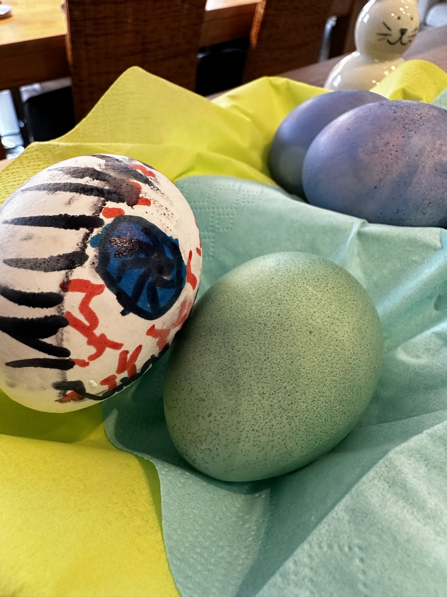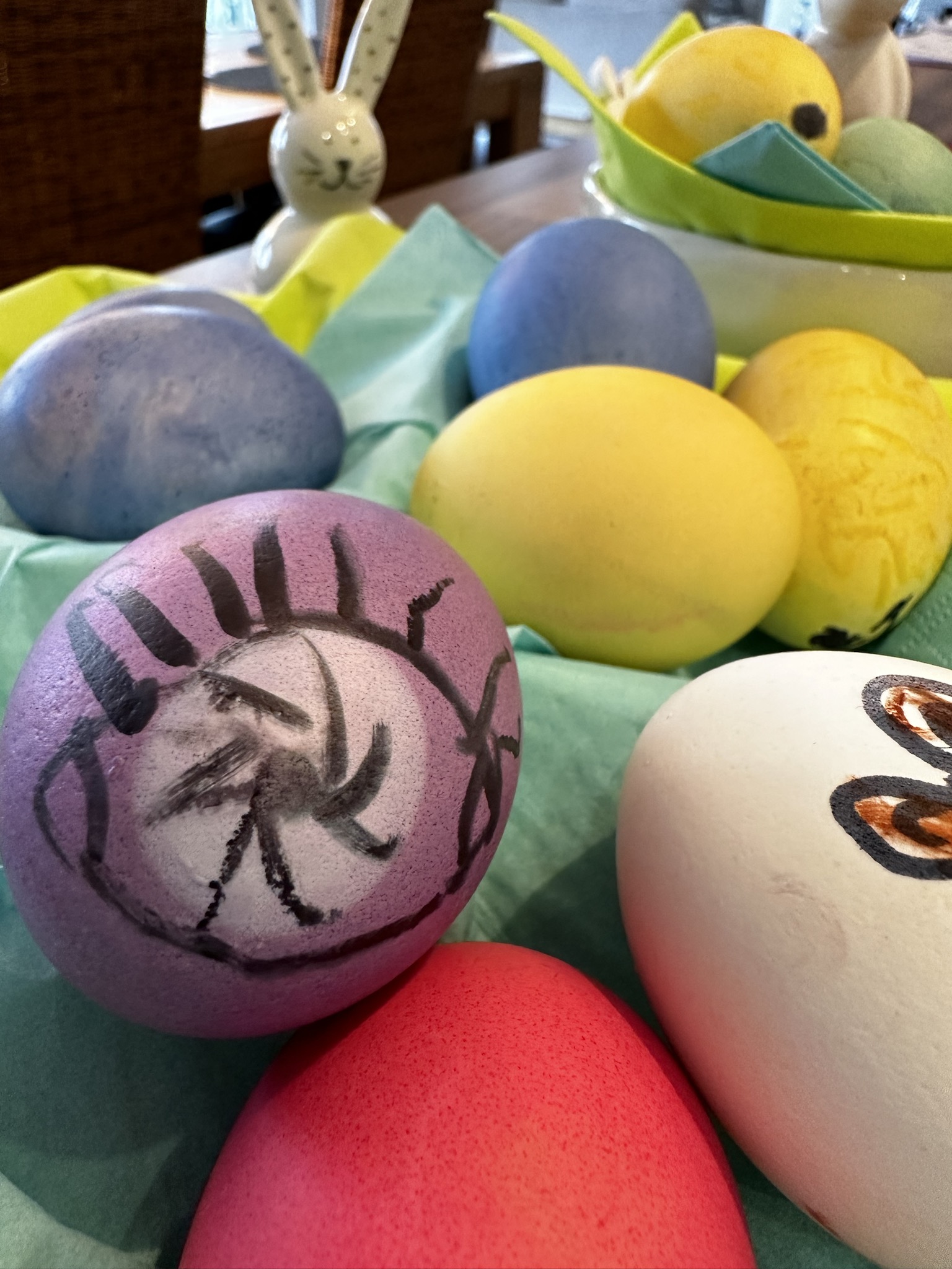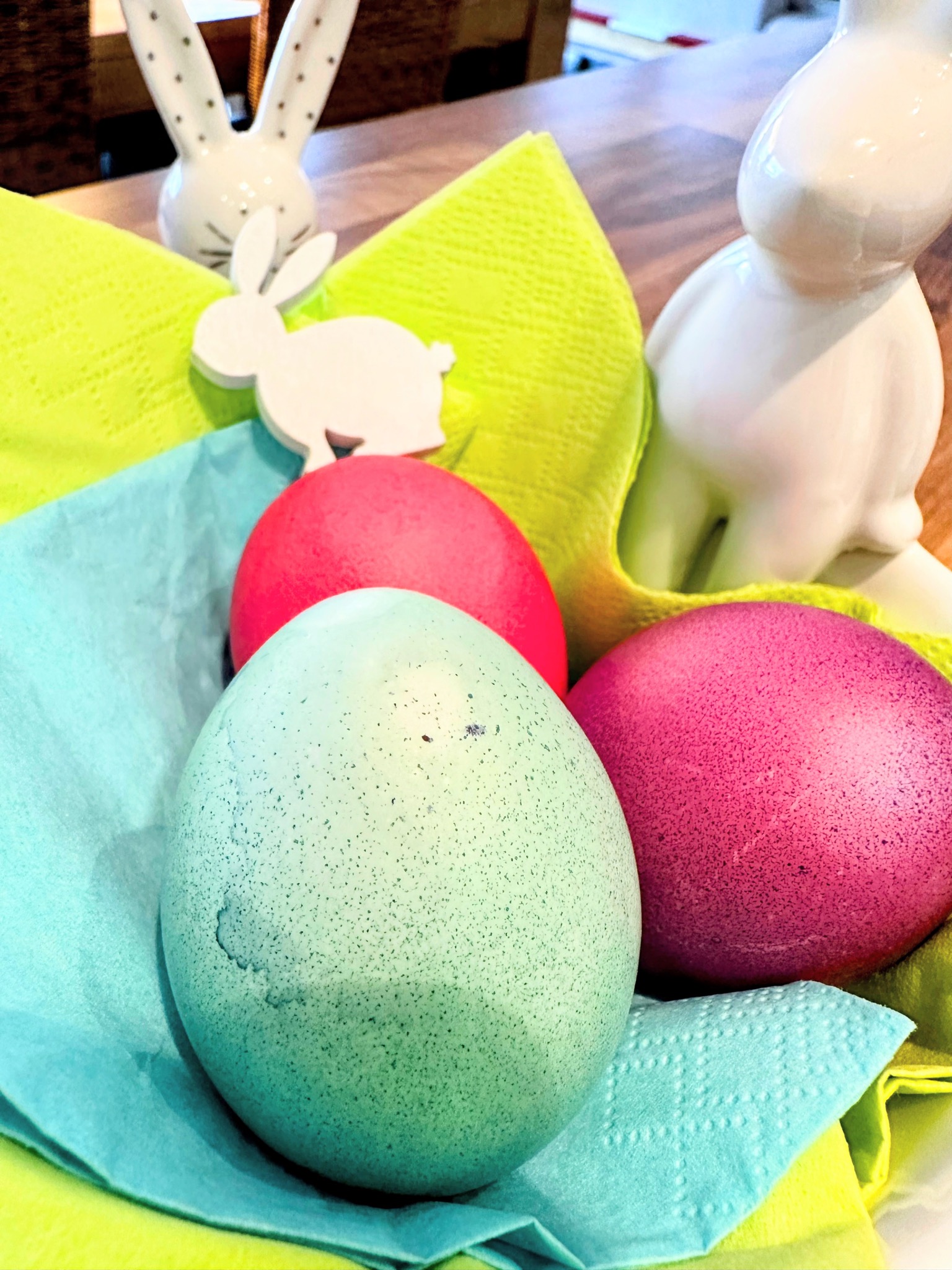 Ich finde es allerdings immer lächerlich, wie feinst säuberlich gefärbte Eierchen in Pastellfarben auf Insta & Co. präsentiert werden!