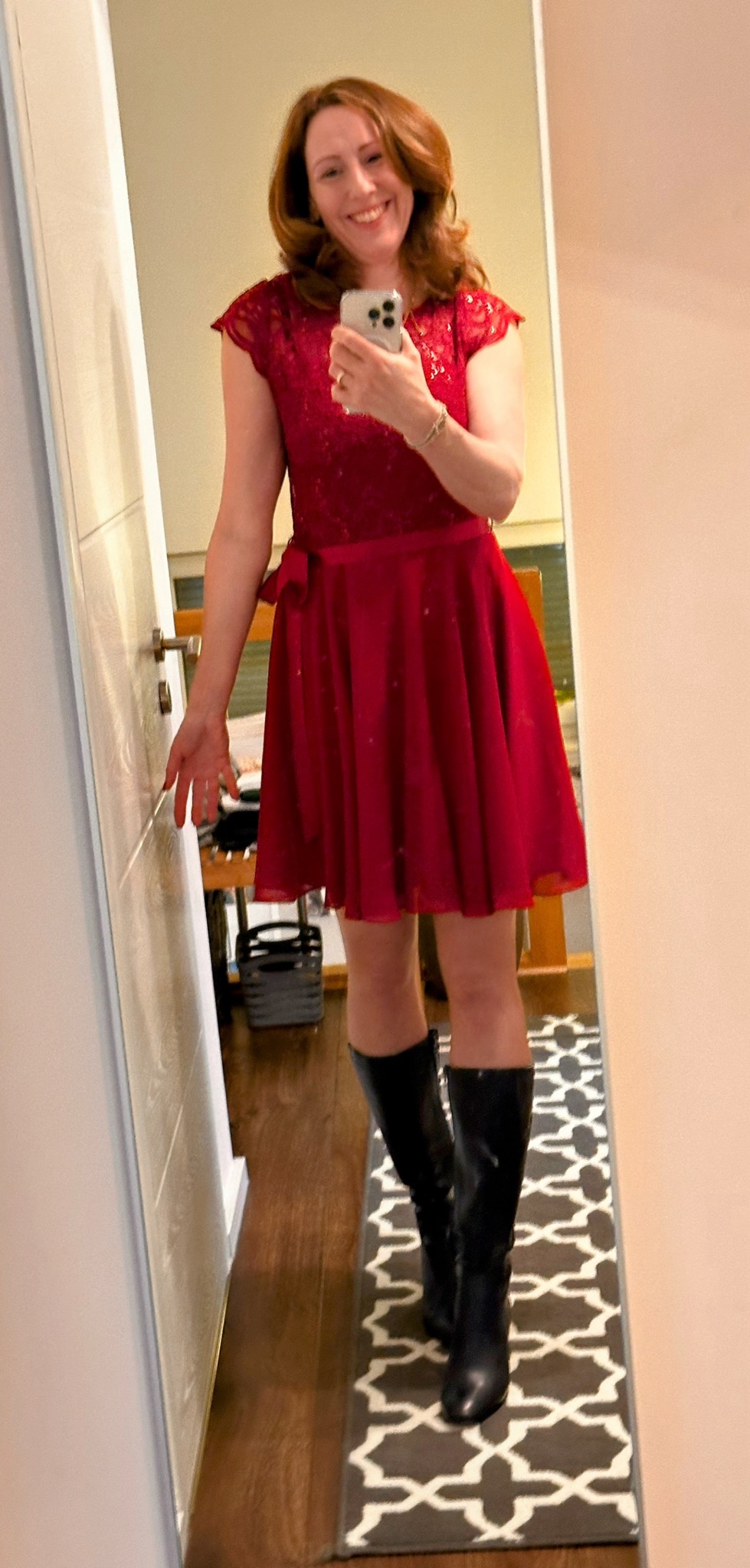 (In der Tat aber sah das Kleid auch damit ganz gut aus – außerdem verdeckten die gut die noch winterblassen Beine 😉 )