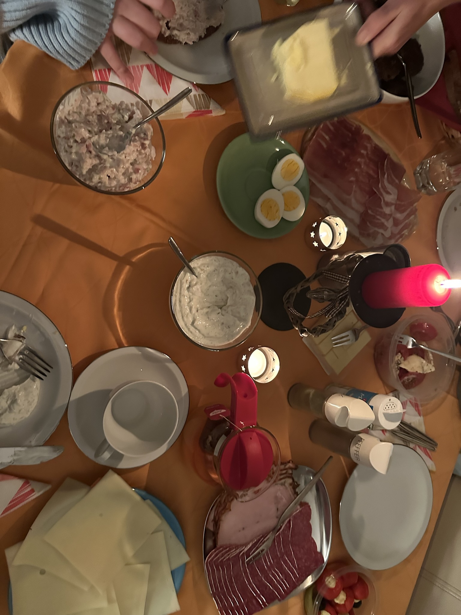 Bei heißem Tee, Brot und selbstgemachten Aufstrichen und Frikadellen (Danke, Papa!) plaudern wir – und haben eben doch noch etwas gemeinsame Zeit an diesem ersten Weihnachtsfeiertag.
