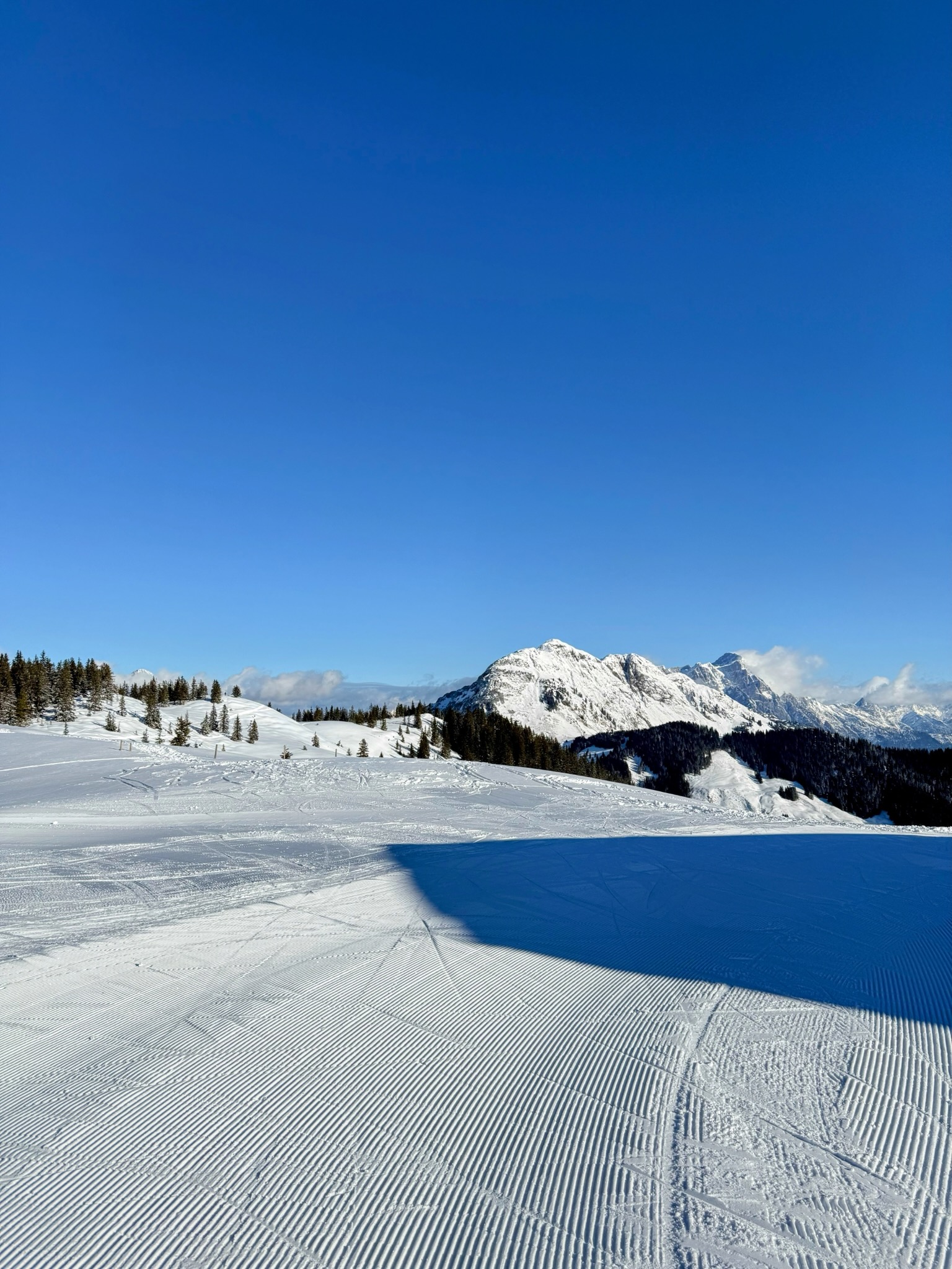 (Auf jener blauen Piste konnte man teils Schuss fahren – das ist wunderbar entspannt und chillig und macht auch mal Spaß!)