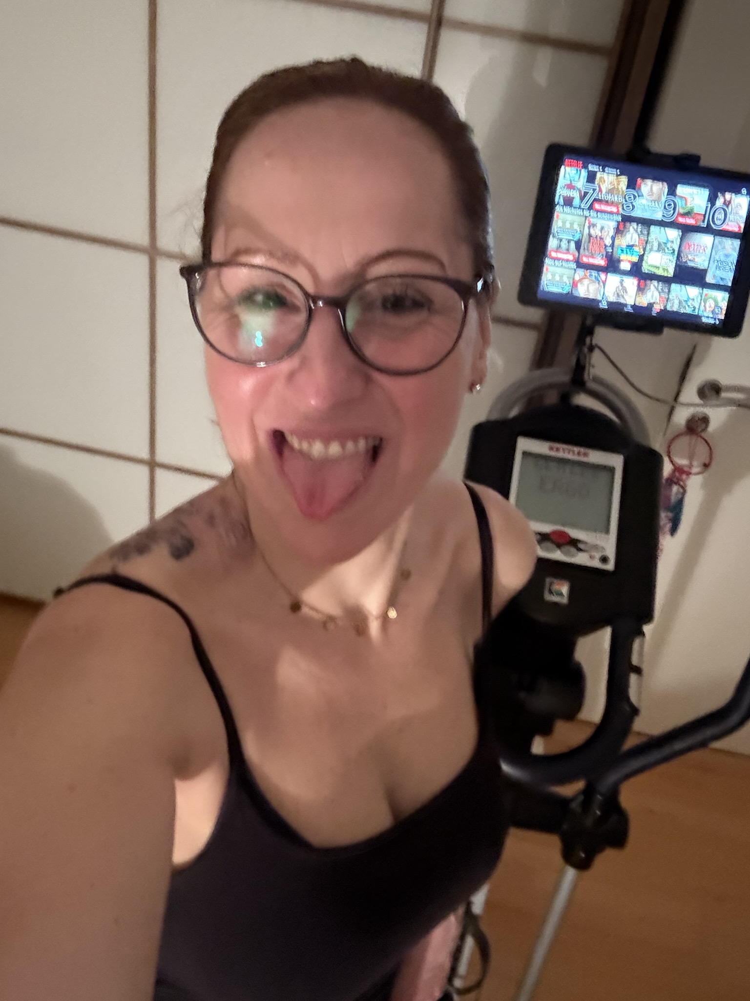 Netterweise nimmt im Anschluss der Papa die beiden Mädels – heute schwer motiviert – mit zum Sport, das gibt mir etwas Luft und Zeit für mich und ich kann selbst zu Hause auf dem Crosstrainer trainieren.