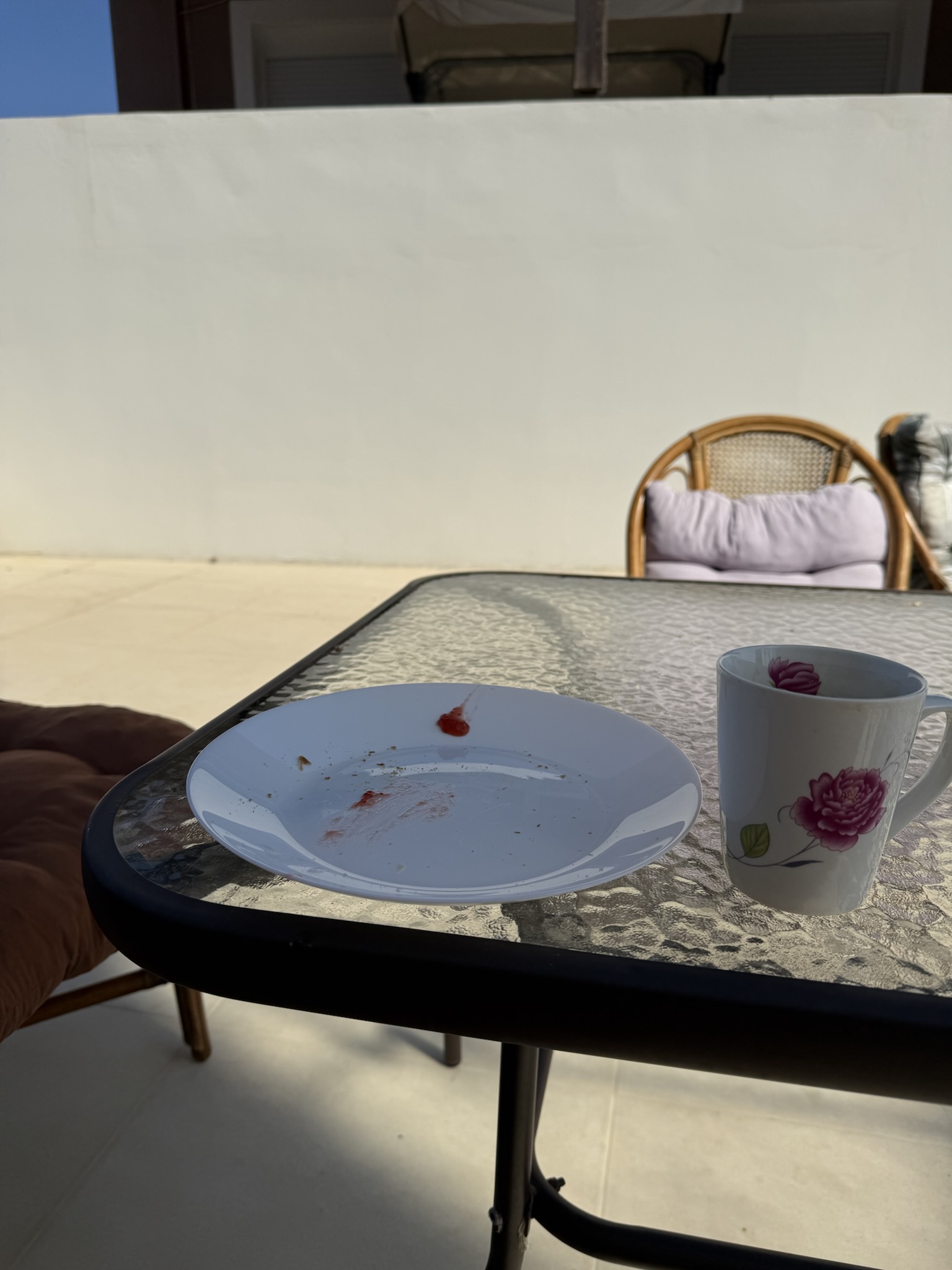 Derweil noch alles vor sich hinlümmelt, sitze ich alleine auf der Dachterrasse, die ich so liebgewonnen habe, und frühstücke.