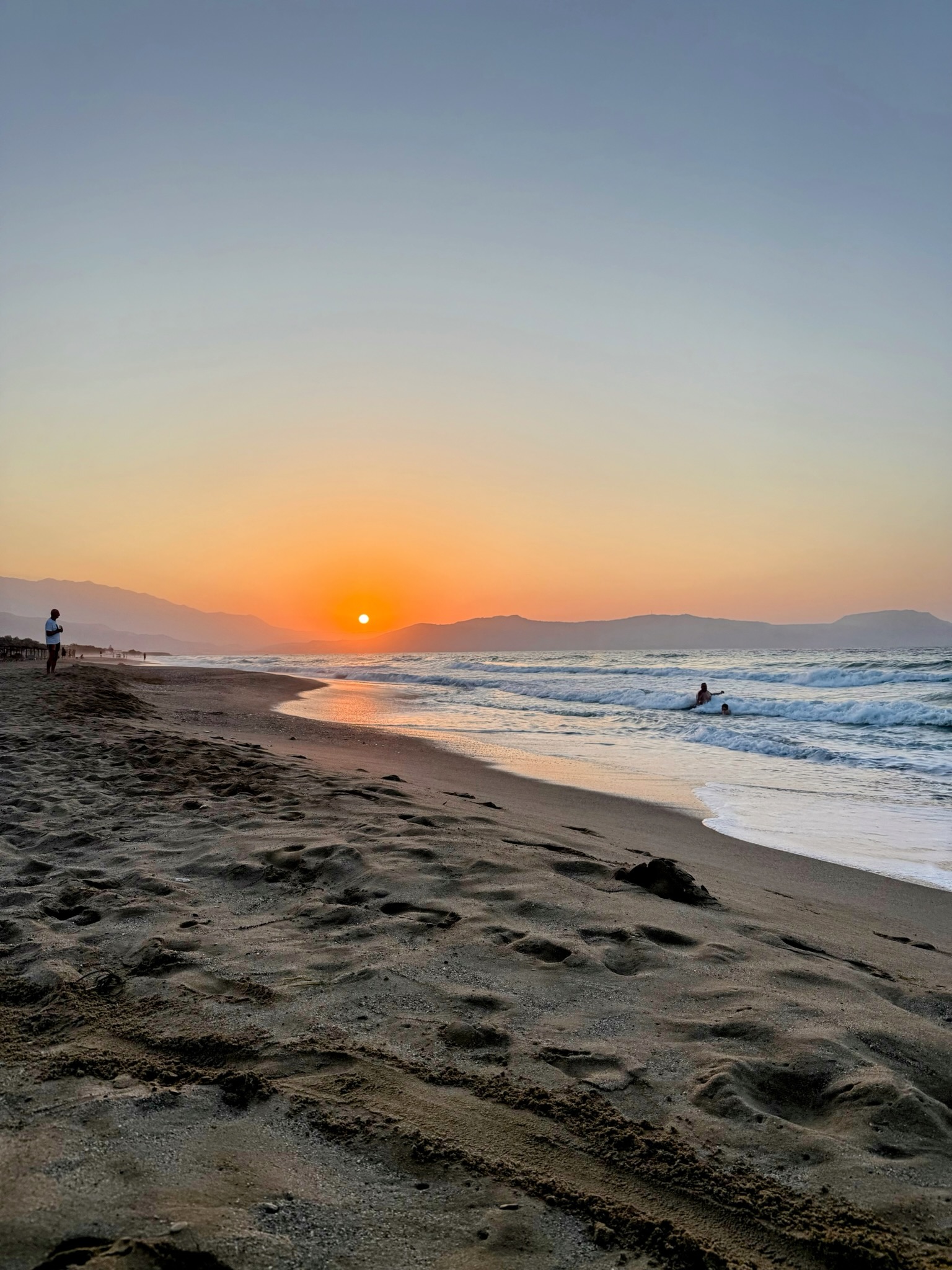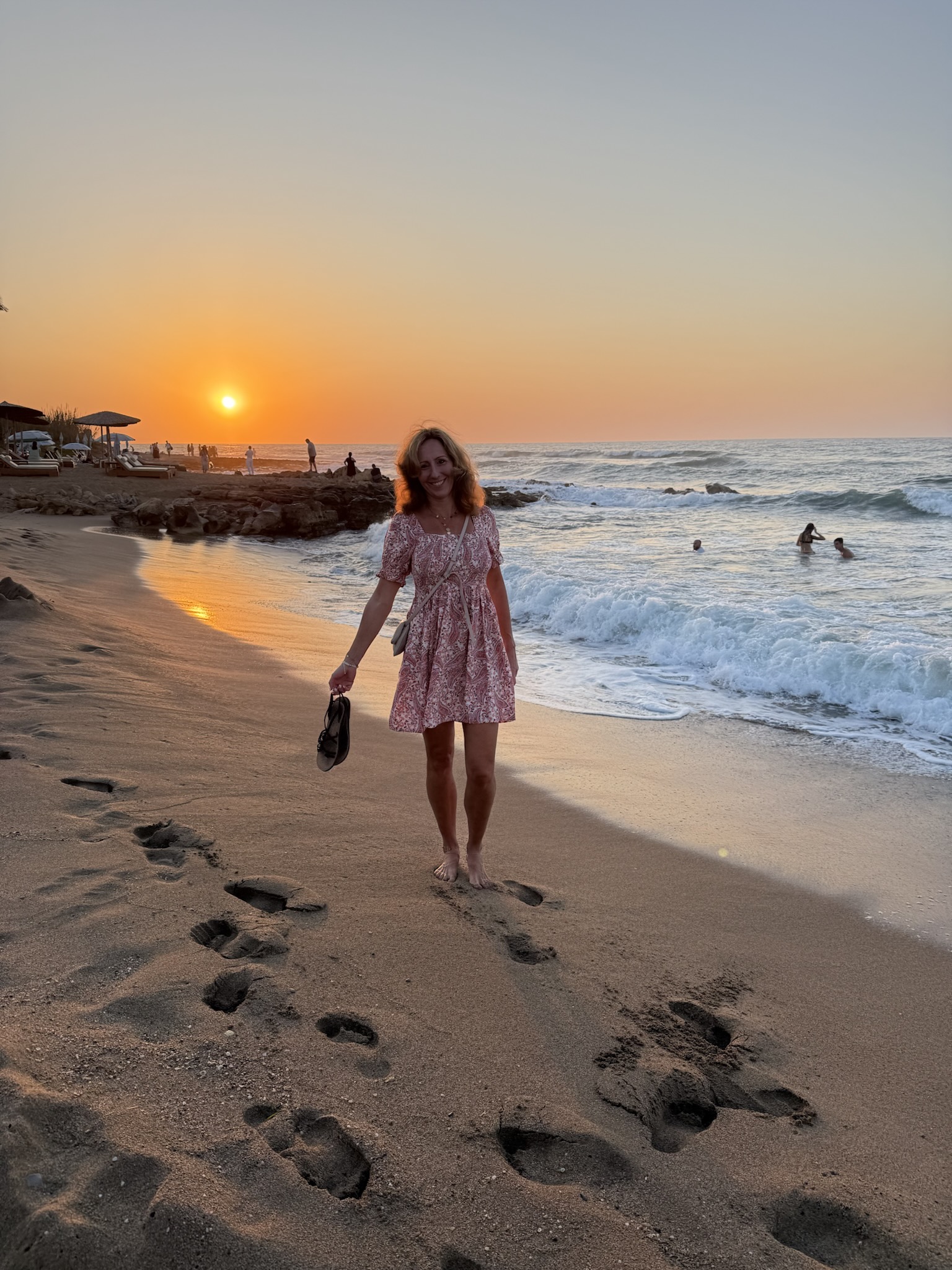 Wir verbringen schöne Stunden zu zweit – und am Nachmittag dann wieder gemeinsam als Familie. Bis zum Sonnenuntergang verweilen wir am Strand, Kinder hüpfen in den Wellen, lesen oder spielen Ball!