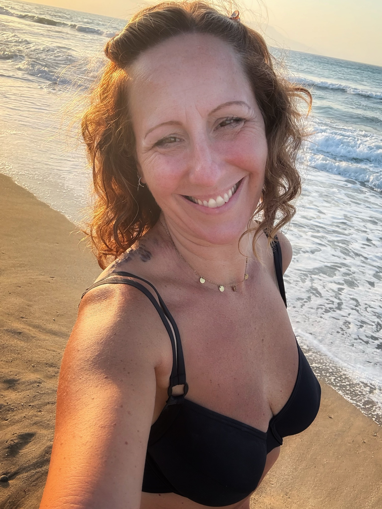 Ich sehe mich zusammen mit dem Sohn und den Töchtern ausgelassen in den Wellen springen, vom Wasser teils verschluckt, die Haare offen und nass, den Bikini verrutscht.